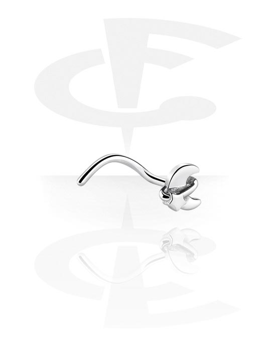 Zakrzywiony sztyft do nosa (stal chirurgiczna, srebro, błyszczące wykończenie) z wzorem księżyca