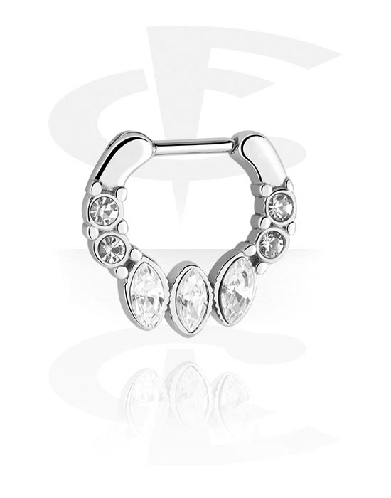 Clicker do septum (stal chirurgiczna, srebro, błyszczące wykończenie) z kryształami