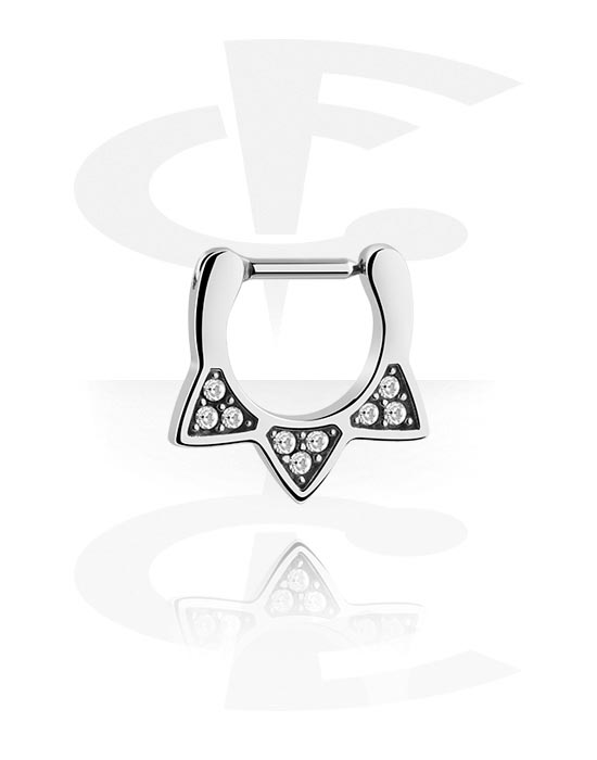 Clicker do septum (stal chirurgiczna, srebro, błyszczące wykończenie) z kryształami