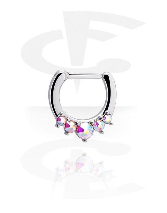 Clicker do septum (stal chirurgiczna, srebro, błyszczące wykończenie) z kryształami