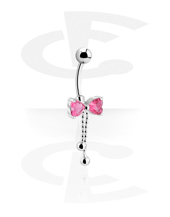 Kolczyk do pępka (stal chirurgiczna, srebro, błyszczące wykończenie) z kokardą i kryształami