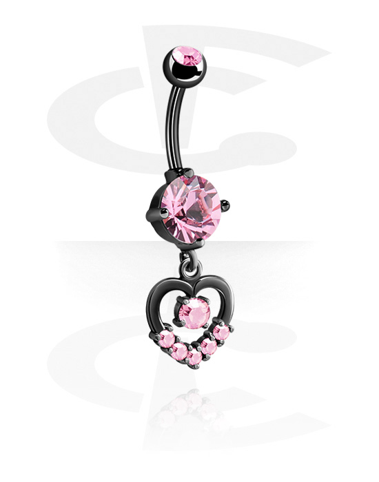 Kolczyk do pępka (stal chirurgiczna, czarny, błyszczące wykończenie) z nakrętką sercem i kryształami