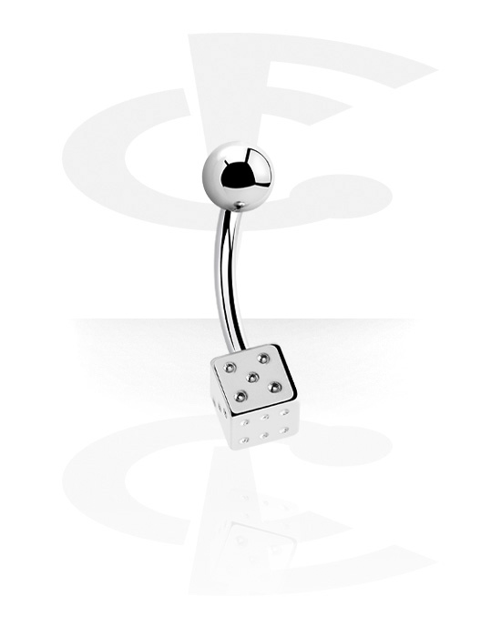 Kolczyk do pępka (stal chirurgiczna, srebro, błyszczące wykończenie) z nakrętką kostką do gry