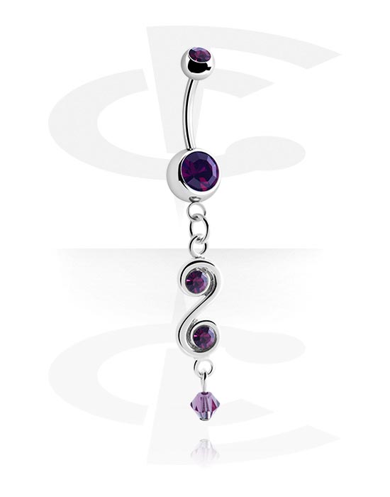 Kolczyk do pępka (stal chirurgiczna, srebro, błyszczące wykończenie) z charmsem i kryształami