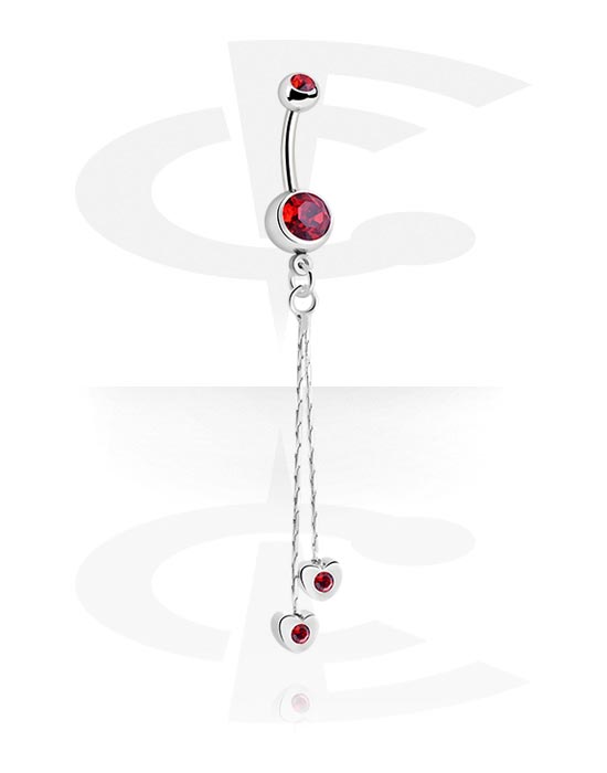 Kolczyk do pępka (stal chirurgiczna, srebro, błyszczące wykończenie) z z charmsem sercem i kryształami