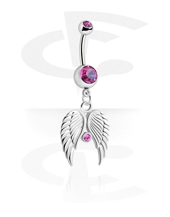 Kolczyk do pępka (stal chirurgiczna, srebro, błyszczące wykończenie) z charmsem skrzydłem i kryształami