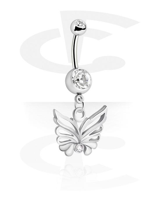 Kolczyk do pępka (stal chirurgiczna, srebro, błyszczące wykończenie) z charmsem motylem i kryształami