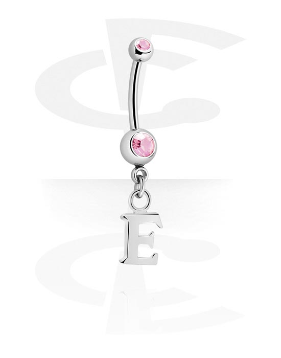 Kolczyk do pępka (stal chirurgiczna, srebro, błyszczące wykończenie) z kulkami z klejnotami i charmsem z literą „E”