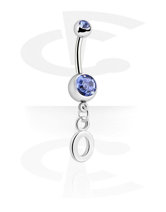 Kolczyk do pępka (stal chirurgiczna, srebro, błyszczące wykończenie) z charmsem z literą „O” i kryształami