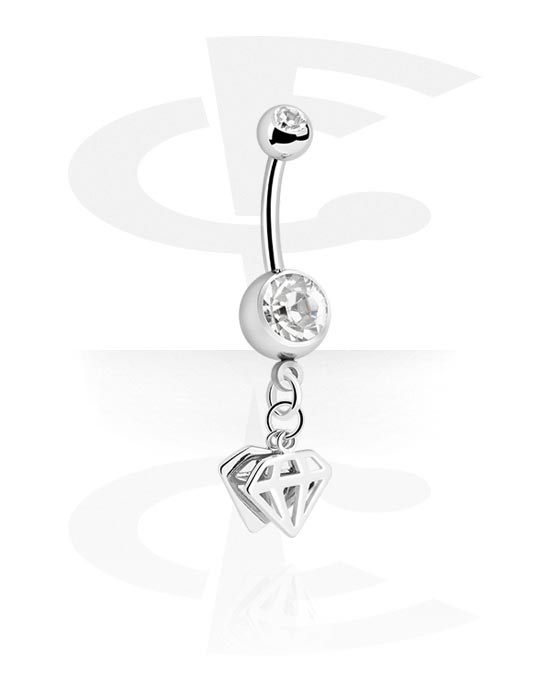 Kolczyk do pępka (stal chirurgiczna, srebro, błyszczące wykończenie) z diamentowym charmsem i kryształami