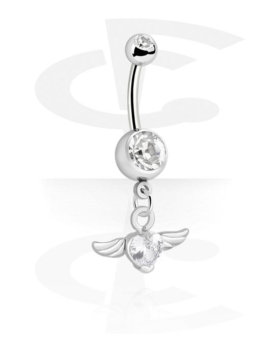 Kolczyk do pępka (stal chirurgiczna, srebro, błyszczące wykończenie) z z charmsem sercem i kryształami