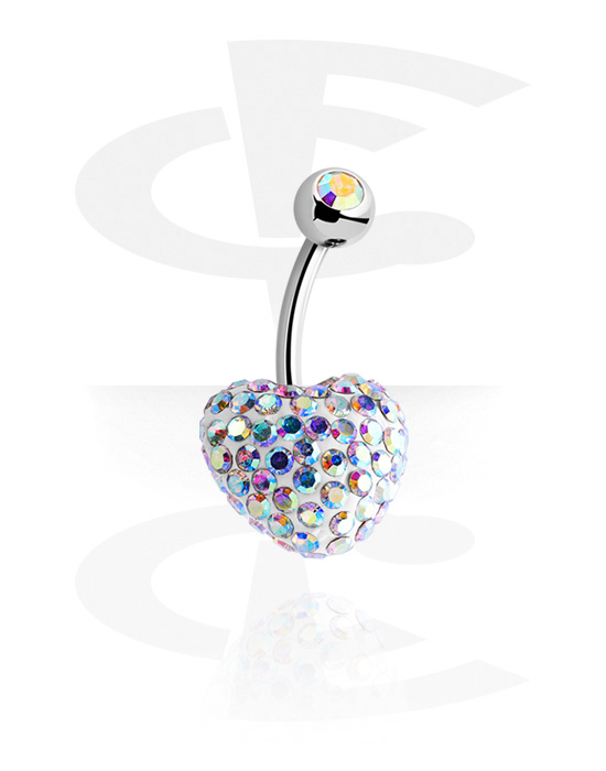 Kolczyk do pępka (stal chirurgiczna, srebro, błyszczące wykończenie) z wzorem serca i kryształami
