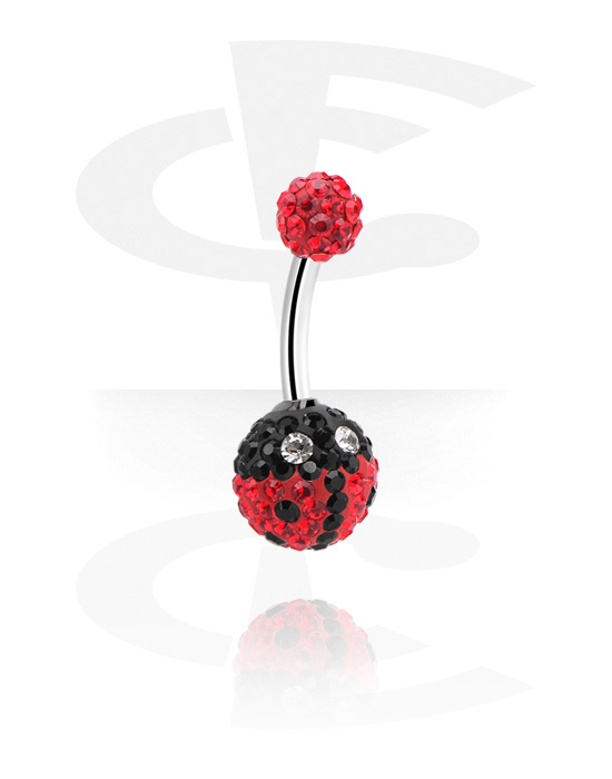 Kolczyk do pępka (stal chirurgiczna, srebro, błyszczące wykończenie) z wzorem „biedronka” i kryształami