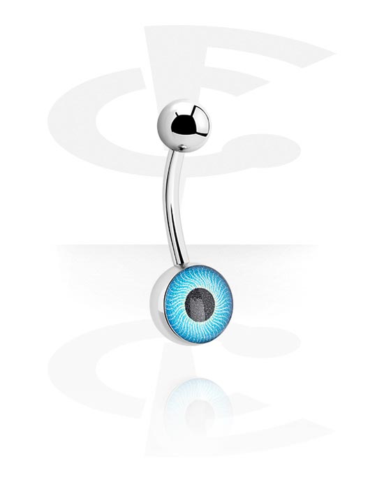 Kolczyk do pępka (stal chirurgiczna, srebro, błyszczące wykończenie) z wzorem oka w różnych kolorach