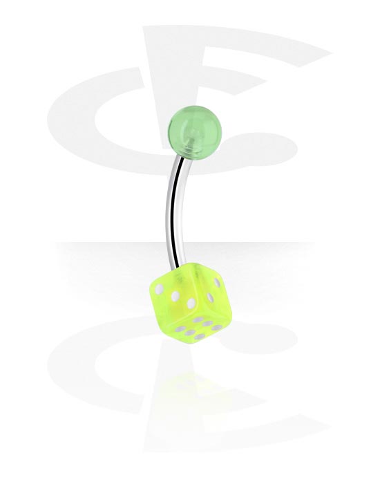 Kolczyk do pępka (stal chirurgiczna, srebro, błyszczące wykończenie) z akrylowymi kulkami i wzorem kostek do gry