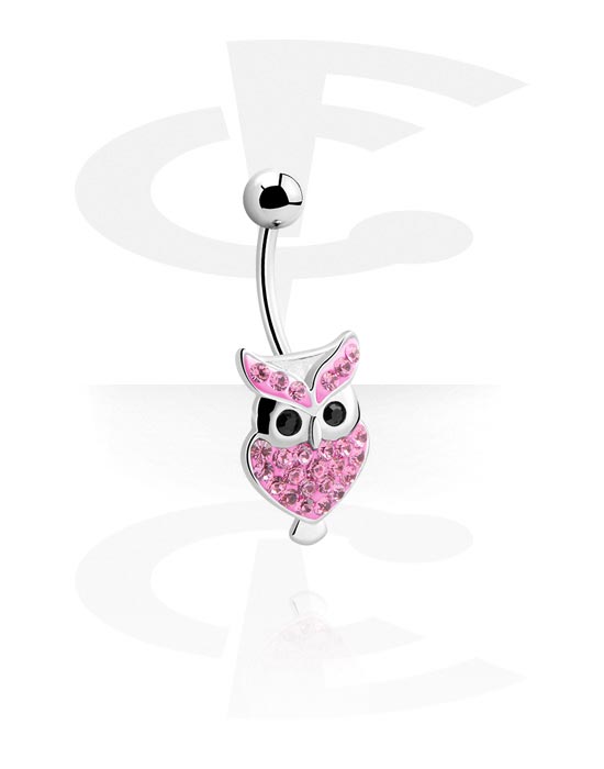 Kolczyk do pępka (stal chirurgiczna, srebro, błyszczące wykończenie) z wzorem sowy i kryształami