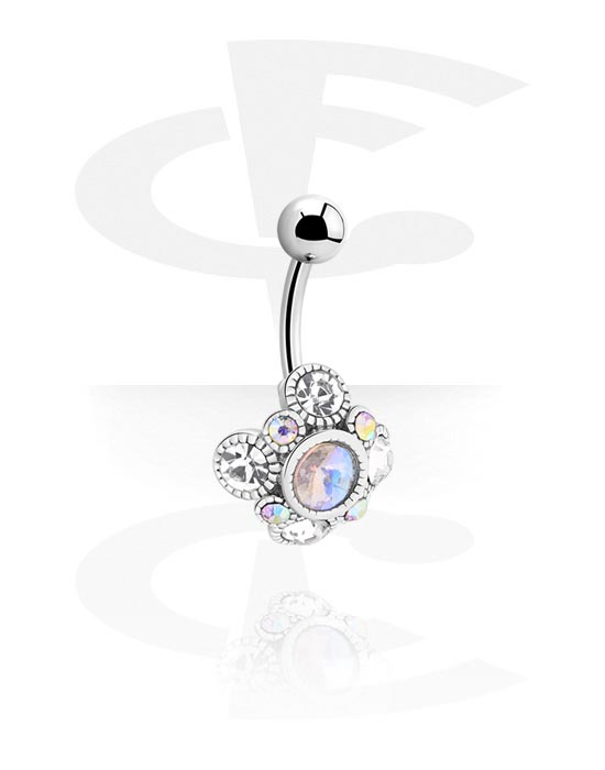Kolczyk do pępka (stal chirurgiczna, srebro, błyszczące wykończenie) z kryształami