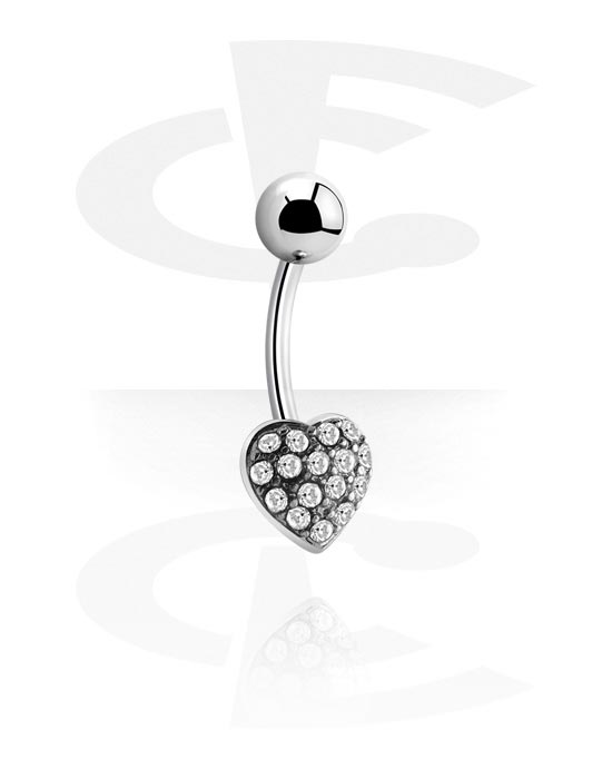 Kolczyk do pępka (stal chirurgiczna, srebro, błyszczące wykończenie) z nakrętką sercem i kryształami