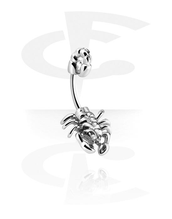 Kolczyk do pępka (stal chirurgiczna, srebro, błyszczące wykończenie) z wzorem skorpiona
