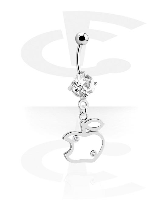 Kolczyk do pępka (stal chirurgiczna, srebro, błyszczące wykończenie) z Apple Attachment i kryształami