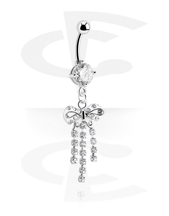 Kolczyk do pępka (stal chirurgiczna, srebro, błyszczące wykończenie) z charmsem i kryształami