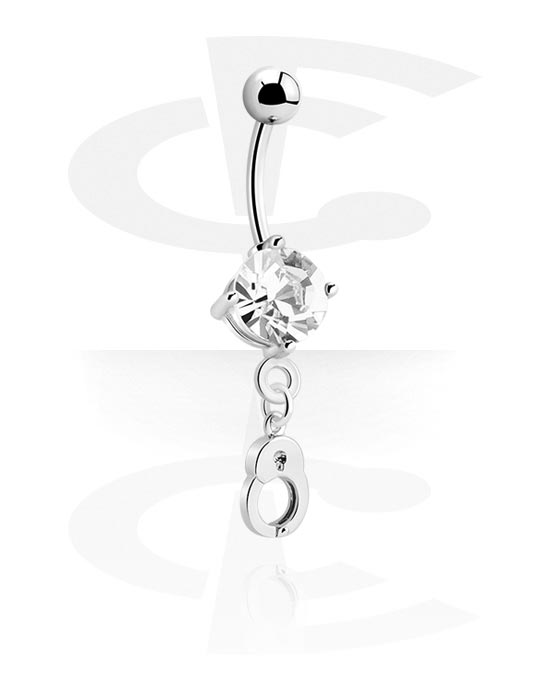 Kolczyk do pępka (stal chirurgiczna, srebro, błyszczące wykończenie) z charmsem kajdankami i z kryształem