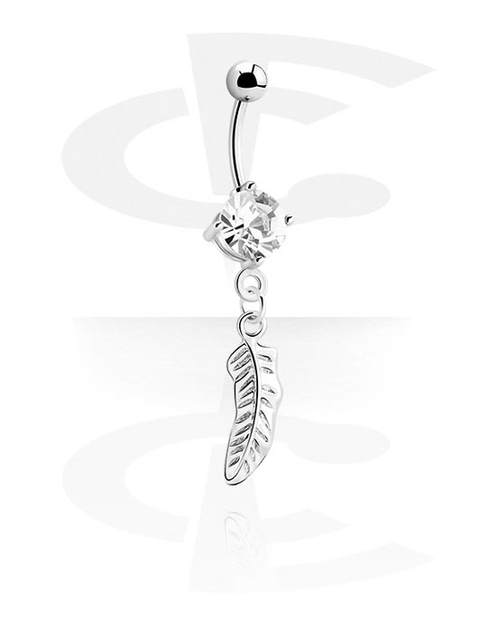 Kolczyk do pępka (stal chirurgiczna, srebro, błyszczące wykończenie) z wzorem liścia i z kryształem