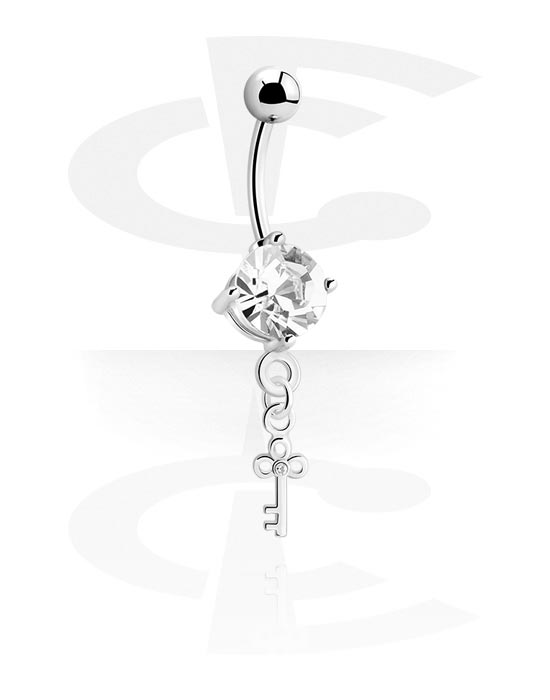 Kolczyk do pępka (stal chirurgiczna, srebro, błyszczące wykończenie) z charmsem kluczem i kryształami