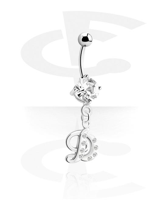 Kolczyk do pępka (stal chirurgiczna, srebro, błyszczące wykończenie) z charmsem z literą „D” i kryształami