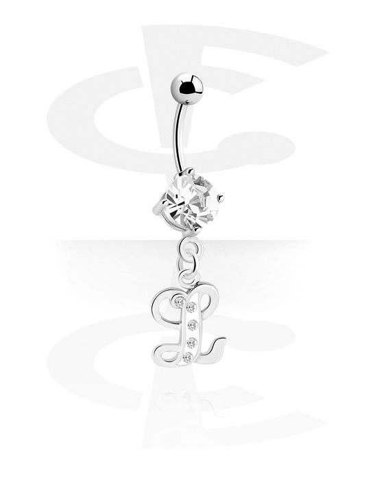 Kolczyk do pępka (stal chirurgiczna, srebro, błyszczące wykończenie) z charmsem z literą „L” i kryształami
