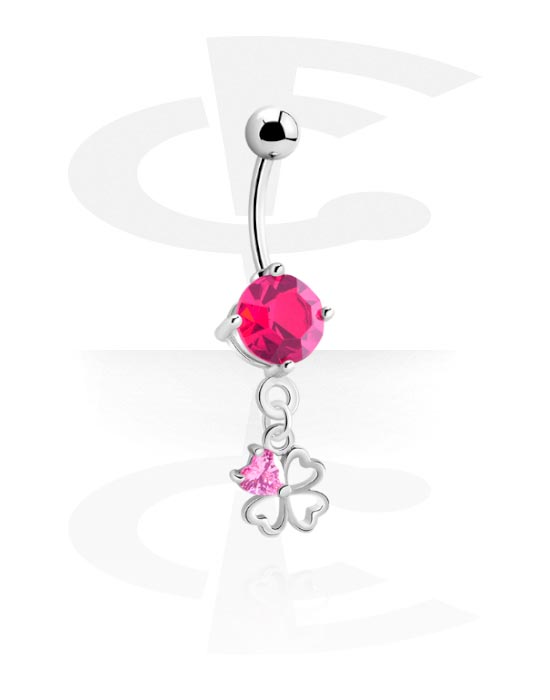 Kolczyk do pępka (stal chirurgiczna, srebro, błyszczące wykończenie) z charmsem koniczynką i kryształami