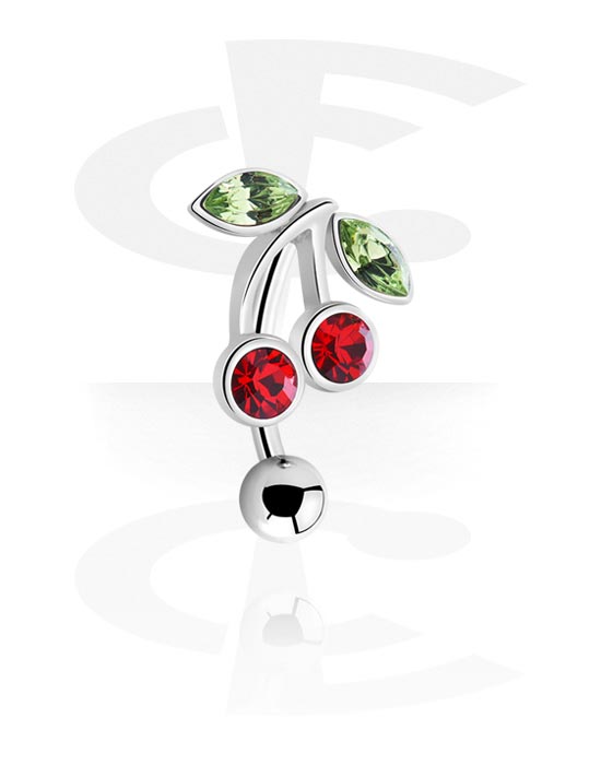 Kolczyk do pępka (stal chirurgiczna, srebro, błyszczące wykończenie) z wzorem wisienki i kryształami