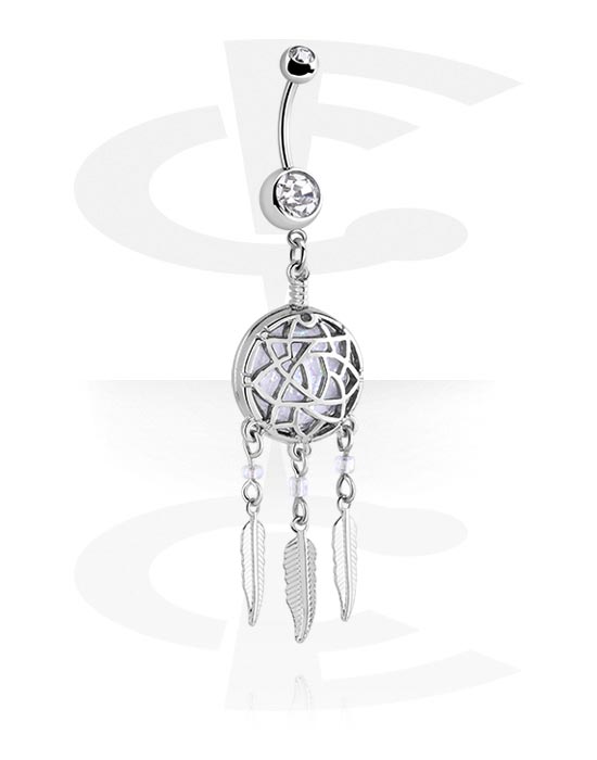 Kolczyk do pępka (stal chirurgiczna, srebro, błyszczące wykończenie) z charmsem łapaczem snów i kryształami