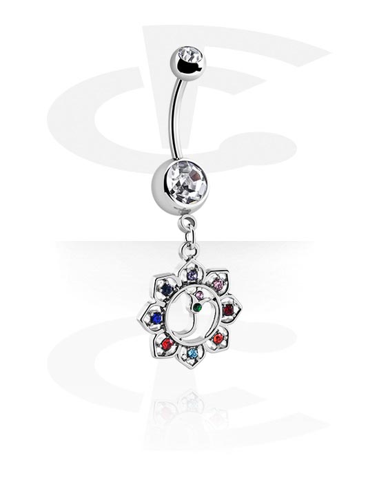 Kolczyk do pępka (stal chirurgiczna, srebro, błyszczące wykończenie) z kryształami