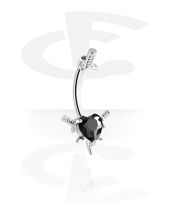 Kolczyk do pępka (stal chirurgiczna, srebro, błyszczące wykończenie) z wzorem miecza i kryształowym sercem