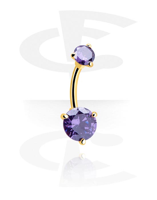 Kolczyk do pępka (stal chirurgiczna, złoto, błyszczące wykończenie) z kryształami