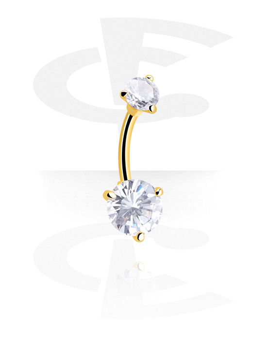 Kolczyk do pępka (stal chirurgiczna, złoto, błyszczące wykończenie) z kryształami