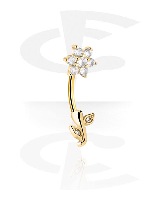 Kolczyk do pępka (stal chirurgiczna, złoto, błyszczące wykończenie) z kwiatem i kryształami