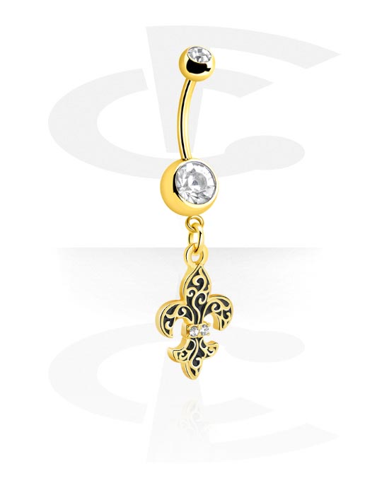 Kolczyk do pępka (stal chirurgiczna, złoto, błyszczące wykończenie) z kryształami