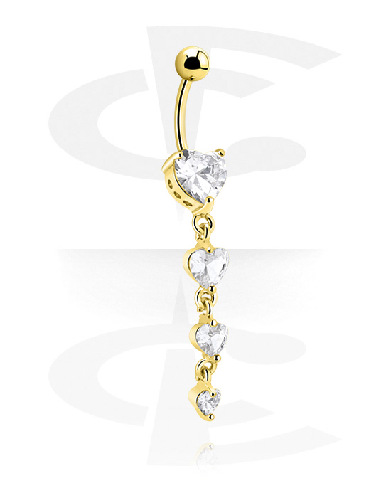 Kolczyk do pępka (stal chirurgiczna, złoto, błyszczące wykończenie) z z charmsem sercem i kryształami