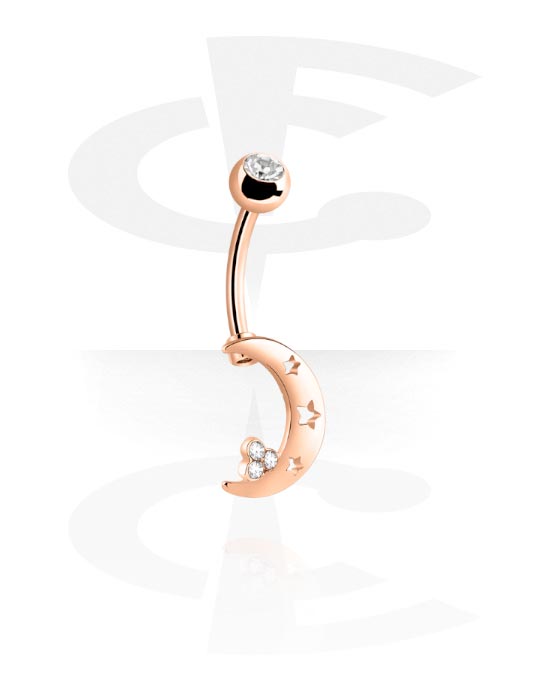 Kolczyk do pępka (stal chirurgiczna, różowe złoto, błyszczące wykończenie) z charmsem półksiężycem i kryształami