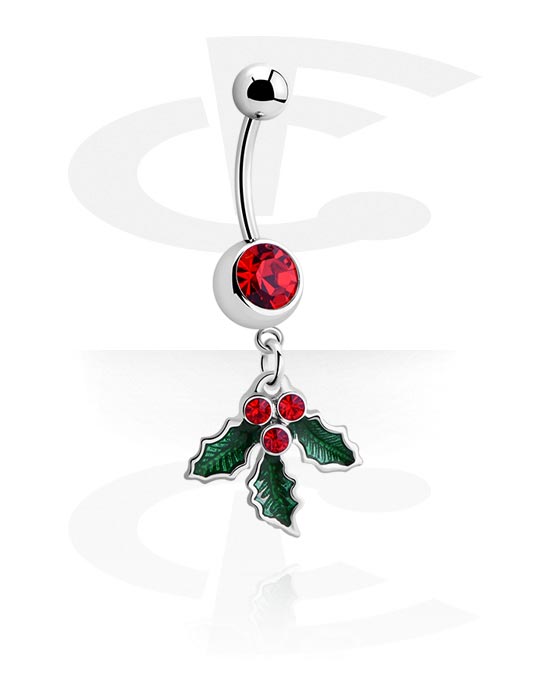 Kolczyk do pępka (stal chirurgiczna, srebro, błyszczące wykończenie) z wzorem jemioły i kryształami