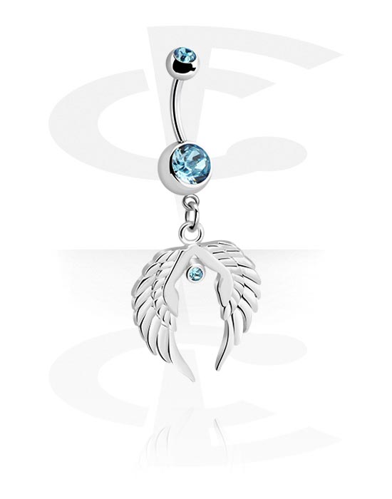Kolczyk do pępka (stal chirurgiczna, srebro, błyszczące wykończenie) z charmsem skrzydłem i kryształami