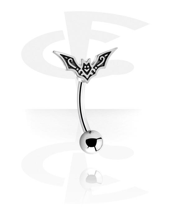 Kolczyk do pępka (stal chirurgiczna, srebro, błyszczące wykończenie) z wzorem nietoperza