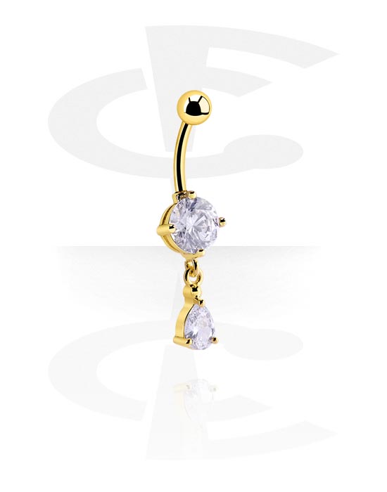 Kolczyk do pępka (stal chirurgiczna, złoto, błyszczące wykończenie) z kryształami