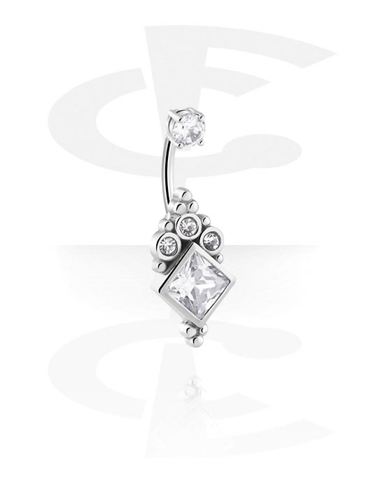 Kolczyk do pępka (stal chirurgiczna, srebro, błyszczące wykończenie) z kryształami