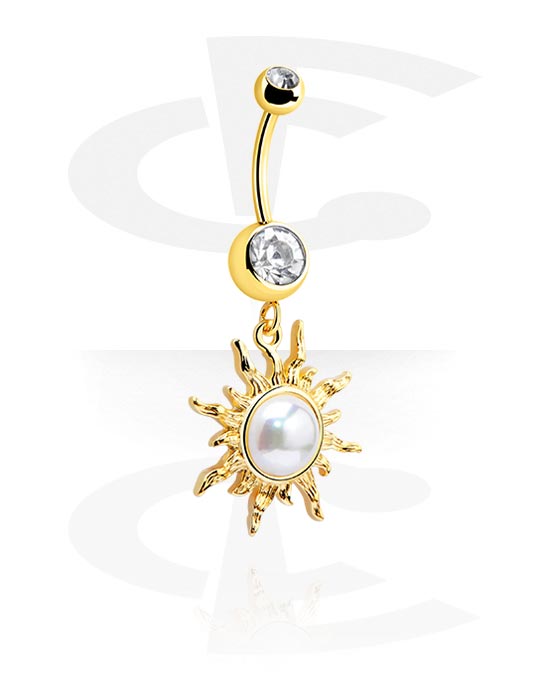 Kolczyk do pępka (stal chirurgiczna, złoto, błyszczące wykończenie) z charmsem „słońce” i kryształami