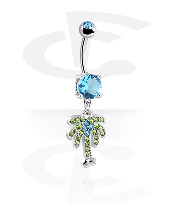 Kolczyk do pępka (stal chirurgiczna, srebro, błyszczące wykończenie) z wzorem palmy i kryształami