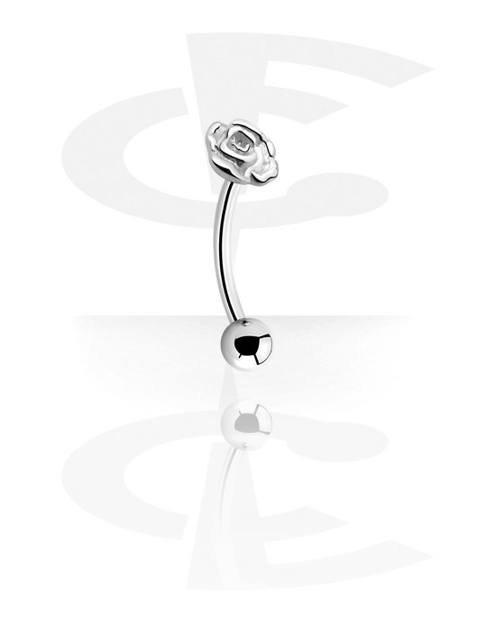 Banan do brwi (stal chirurgiczna, srebro, błyszczące wykończenie) z wzorem róży