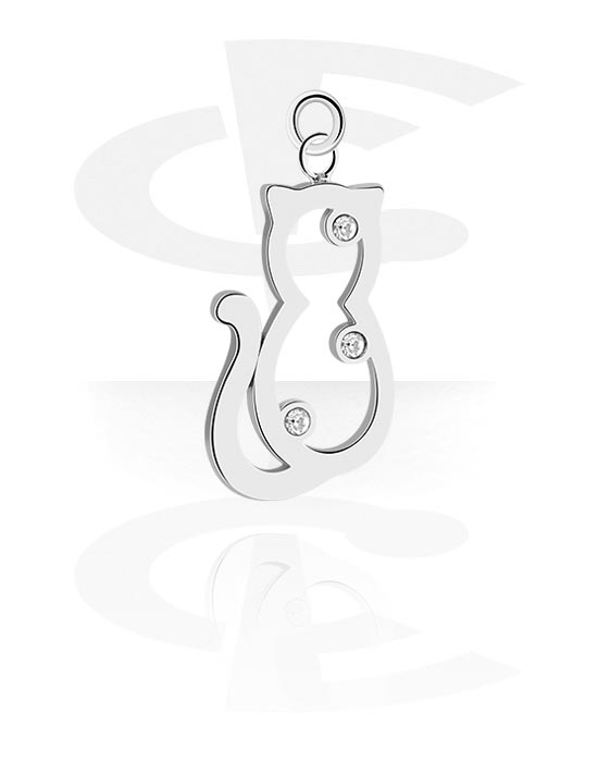 Charms (stal chirurgiczna, srebro, błyszczące wykończenie) z wzorem kota i kryształami